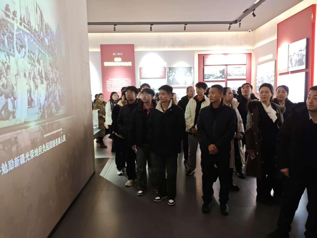 参观过程中,全体师生神情专注,专心致志地听取每一个历史细节的讲解,通过近距离观摩历史实物和艺术作品,深切体会到新疆各族人民在党的坚强领导下,共同团结奋斗、共同繁荣发展的伟大历程。