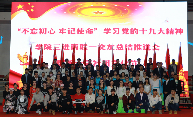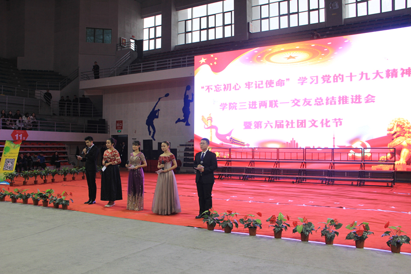 为深入贯彻落实学习党的十九大精神,深化2017年度学院“民族团结一家亲”“三进两联一交友”工作,促进校园文化建设,“不忘初心·牢记使命”学习党的十九大精神学院三进两联一交友总结推进会暨“青春践行十九大·你我共筑社团梦”第六届社团文化节闭幕式于12月13日在学院文体中心成功举办。