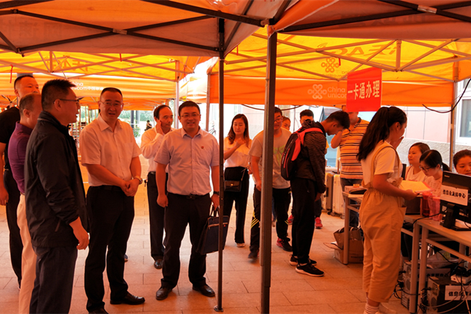 期间,学院党委副书记、院长段明社亲临报到现场,对报到流程、网络保障、后勤服务及各相关部门的工作情况进行了实地调研和指导,确保迎新工作顺利展开。值得一提的是,由中国联通提供的新生报到统计系统成为了本次迎新工作的又一大亮点,实时报到人数、男女生比例、最新报到同学等详实的数据一目了然,为学院了解新生报到情况,提供了准确的数据服务。