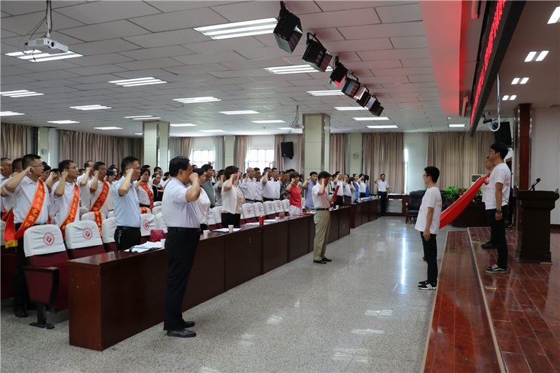 大会在雄壮的《国歌》中拉开了序幕。全体党员在学院党委书记、副院长王瀚书记的带领下重温了入党誓词。