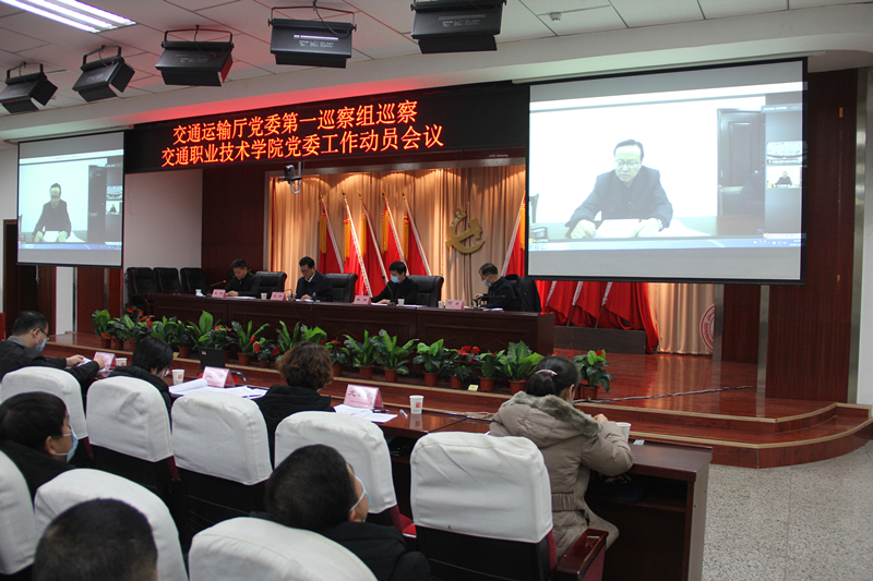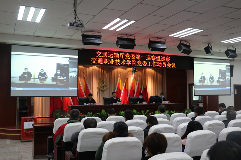 根据交通运输厅党委统一部署,2020年11月26日下午,交通运输厅党委2020年第一巡察组在交通职业技术学院召开巡察工作动员会。交通运输厅党委副书记(厅长级)、运管局党委书记、厅巡察工作领导小组副组长、巡察办主任刘平出席会议并讲话。厅党委第一巡察组组长王幸及第一巡察组成员,厅党委巡察办有关同志、学院党委领导班子成员、中层领导干部、副高级以上(含副高)职称干部、机关全体干部、教职工党员代表及离退休干部代表参加会议。