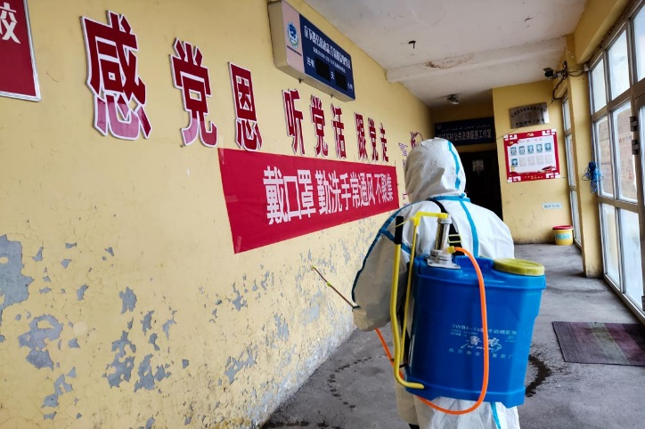 预科5班乌勒波森·阿烈尼协助村委会开展防疫消杀工作