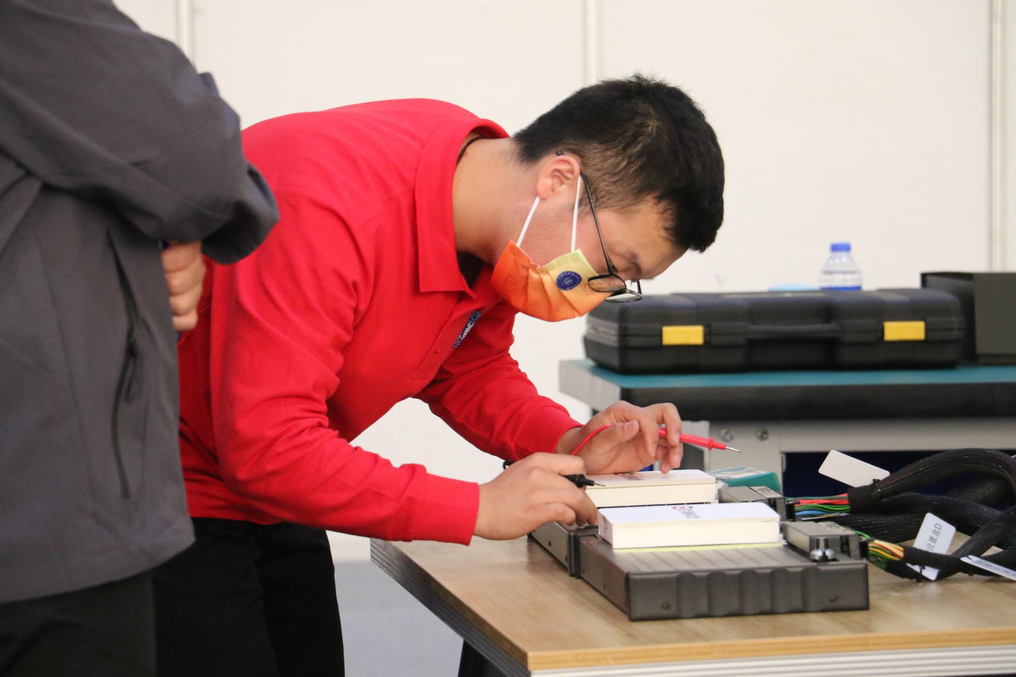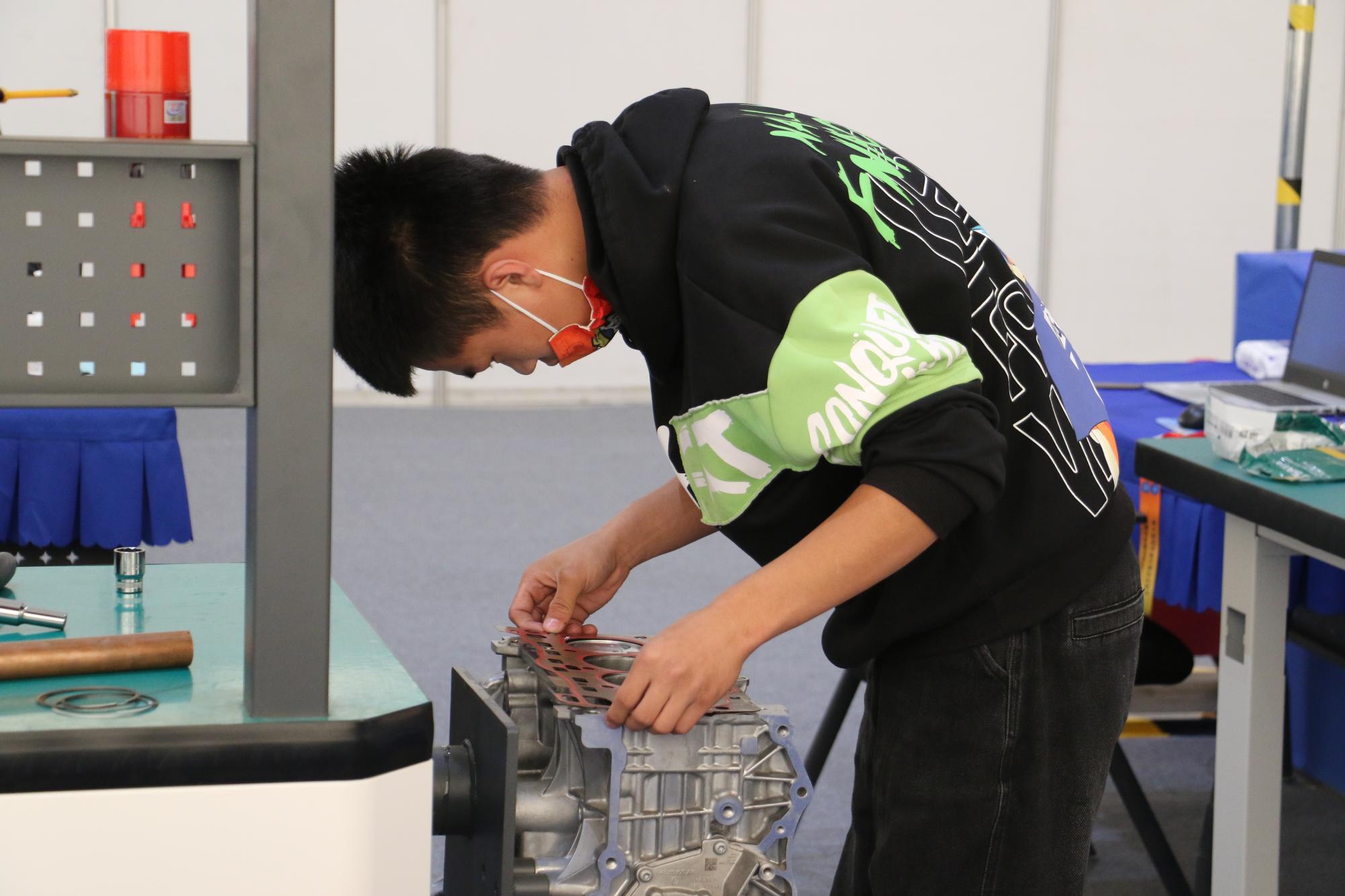 在比赛过程中,学院10名教师协助裁判长完成选手检录、健康核查、赛场观摩、成绩录入、安全保障、后勤服务等多项工作;20余名学生负责汽车维修工赛项中汽车故障诊断与排除和发动机机械系统拆装检修两个项目、18个工位设备恢复工作;1名教师作为裁判进行执裁工作,为大赛顺利进行贡献力量。