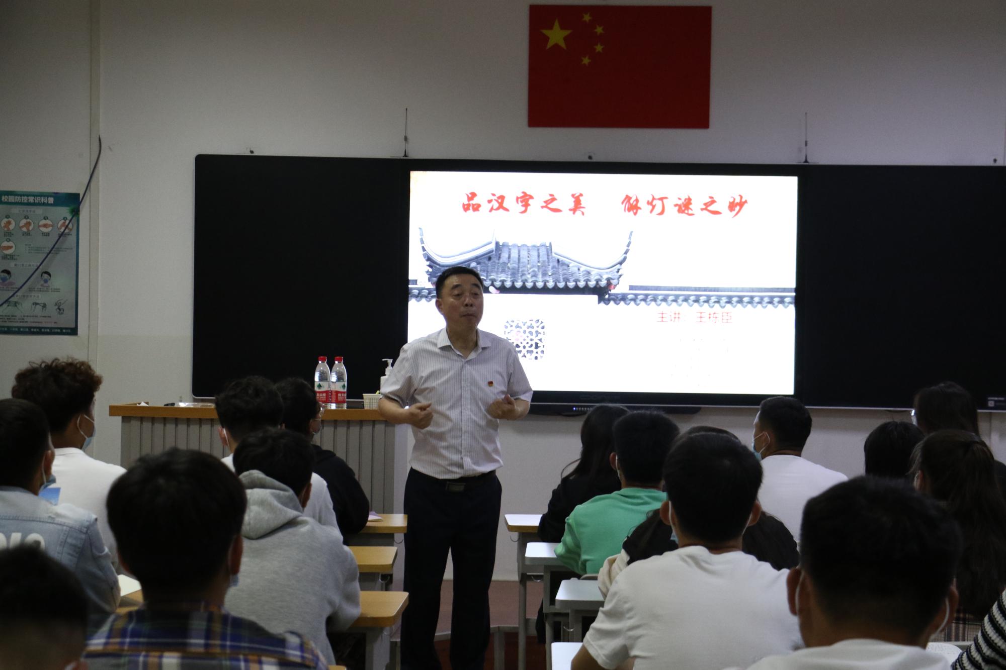为弘扬中华优秀传统文化,引导学生感悟中华优秀传统文化的精神内涵,铸牢青年学生中华民族共同体意识,5月12日晚,道路桥梁工程学院举办了中华优秀传统文化进校园活动之《品汉字之美,解灯谜之妙》讲座,由新疆交通职业技术学院党委宣传部副部长王栋臣老师主讲,学院国学社师生参加了本次活动。