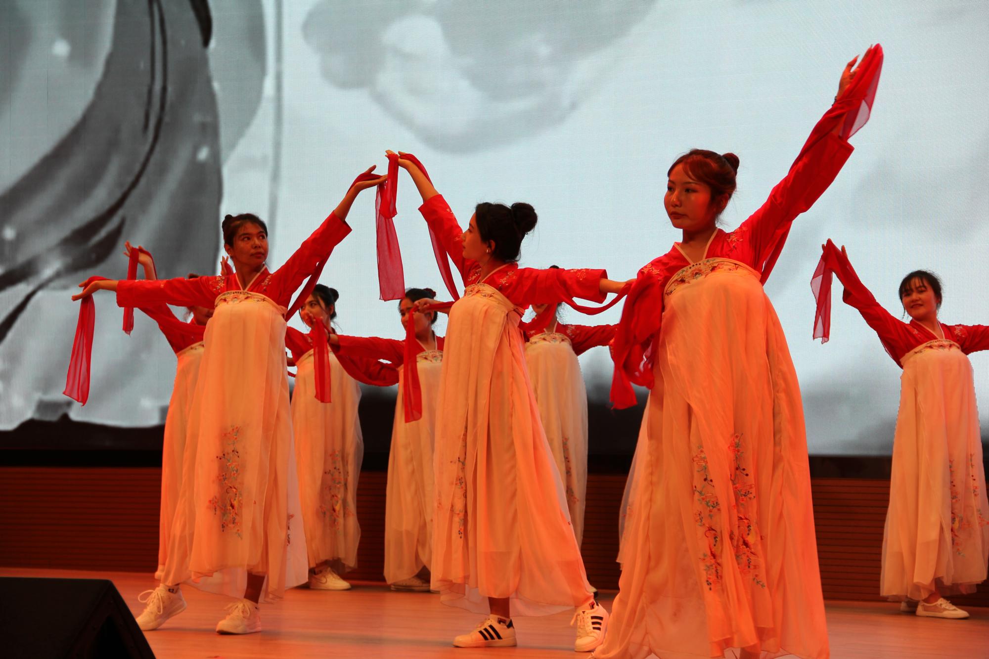 活动在慷慨激昂的国歌声中拉开帷幕,选手们以饱满的精神状态,声情并茂、富有感染力的表演给现场观众带来了一场精彩而温情的活动盛宴。舞蹈《中国字·中国人》青春洋溢,各民族同学共同演绎出中华民族博大精深的文化魅力,信号G201班努尔麦麦提·艾麦尔劲健的毛笔字更是赢得现场观众的阵阵掌声;《共青团之歌》合唱激情澎湃,展现了当代青年用信念吹响青春号角的决心;机电D203 亚库甫江·那加甫表演的《再见老兵》那句“召必回”句句铿锵、动作熟练,展现了我院学子参军5年返校学习退伍不褪色,用青春实现中华民族伟大复兴中国梦的坚强决心;《五四风云》《请回答,青年》等节目通过演绎经典话剧的方式缅怀先烈、青春担当,重温了热血青年的为新中国的奋斗征程。