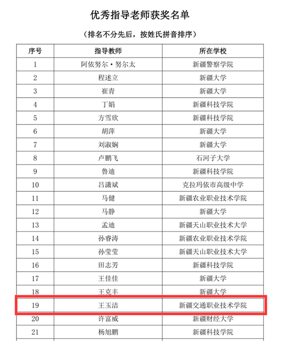 我院共派出6支参赛队18名选手参赛,经过1天的激烈角逐,我院人工智能工程学院fastjsonLog4j参赛队(指导老师:王玉洁,参赛队员:胡骏、孙涛、蒋仲鑫)荣获高职高专组一等奖;明日之星参赛队(指导老师:胡龙基,参赛队员:阿扎提古丽·亚森、米尔妮萨·艾力、沙依达·吐尔地)荣获高职高专组优秀奖。新疆交通职业技术学院荣获优秀组织奖,指导老师王玉洁喜获优秀指导老师奖。