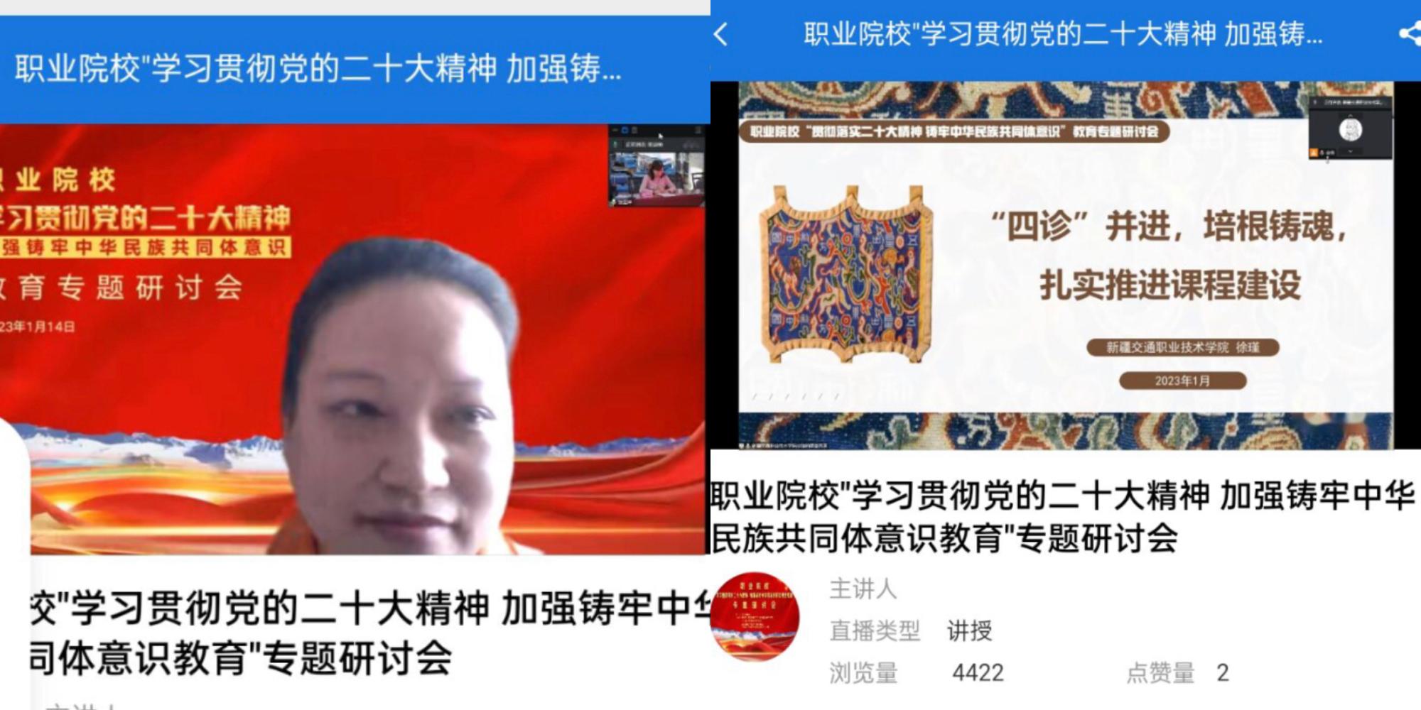 为深入贯彻落实党的二十大精神,加强铸牢中华民族共同体意识教育,1月14日,由教育部高校思想政治理论课教学指导委员会“高职高专思政课”分教学指导委员会指导,新疆维吾尔自治区党委教育工委、新疆维吾尔自治区教育厅、全国高职高专党委书记论坛主任委员会、全国职业院校“大思政课”建设创新联盟、全国高校思政课名师工作室(新疆农业职业技术学院)主办的职业院校“学习贯彻党的二十大精神 加强铸牢中华民族共同体意识教育”专题研讨会,以线上线下相结合的方式顺利召开。广西、内蒙古、宁夏、西藏等自治区职业院校的专家代表和疆内职业院校的专家、教师共计5000余人次通过线上方式共同参加了研讨会。