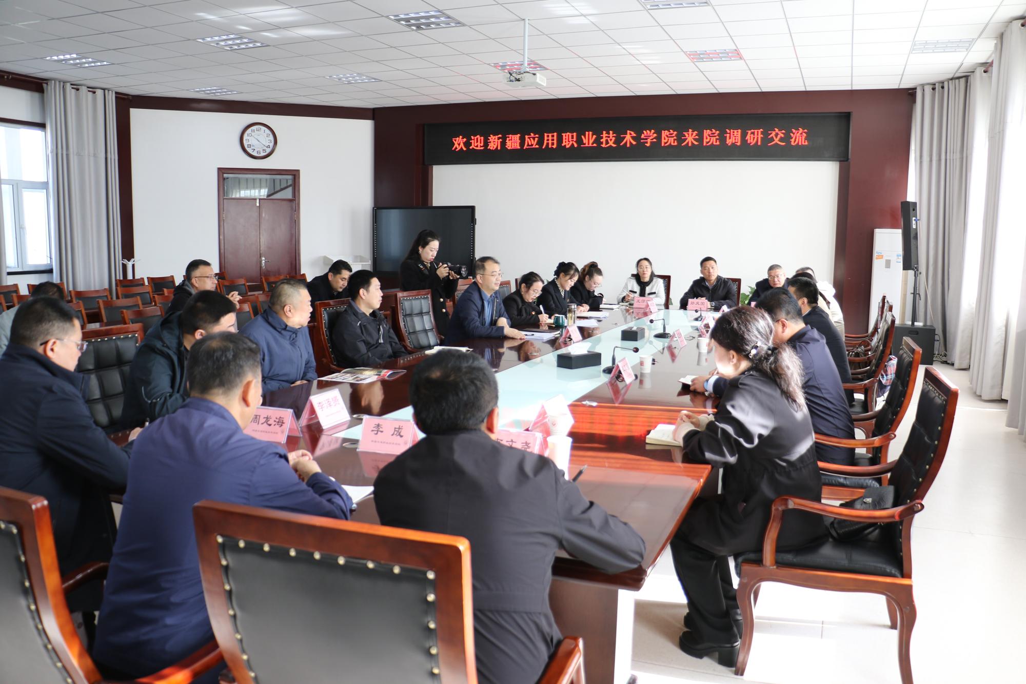 4月19日,新疆应用职业技术学院党委副书记孟宪峰一行来学院就学院文化建设、马克思主义建设等方面进行了参观交流。学院党委副书记、院长何朴出席座谈会。