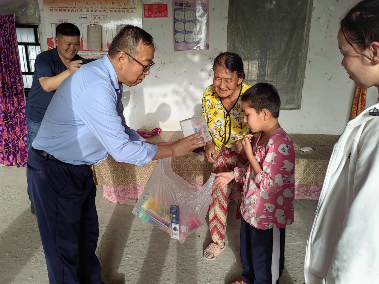 6月4日,新疆交通职业技术学院“访惠聚”驻村工作队开展残疾儿童慰问活动,为加依村残疾儿童捐赠了学习用品、玩具、水杯等慰问物资。