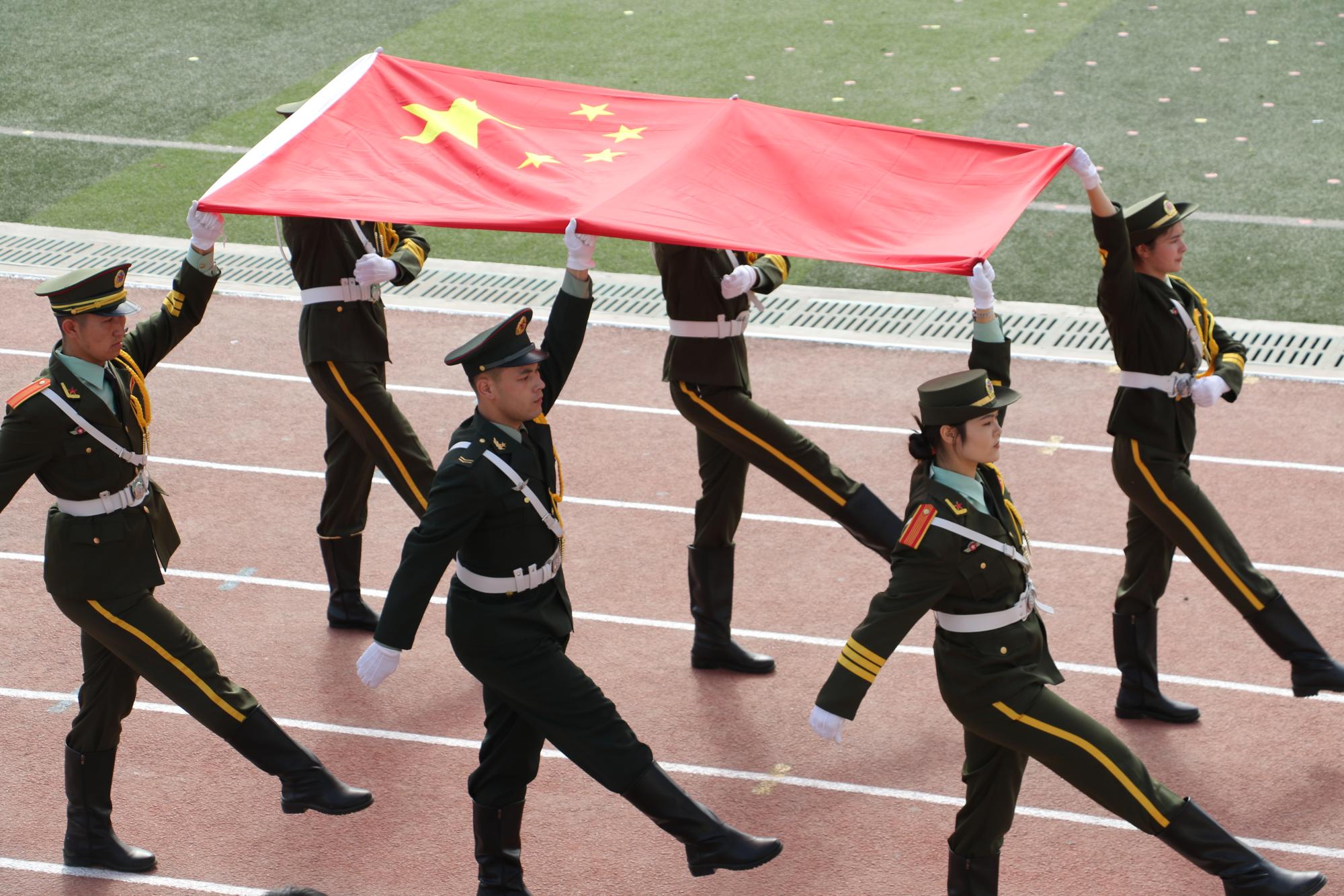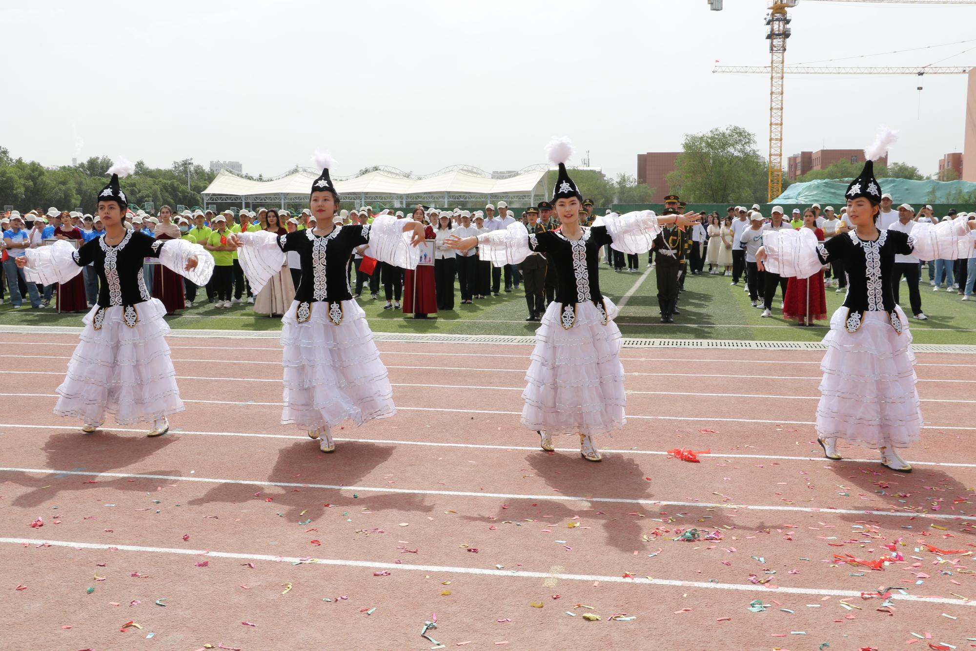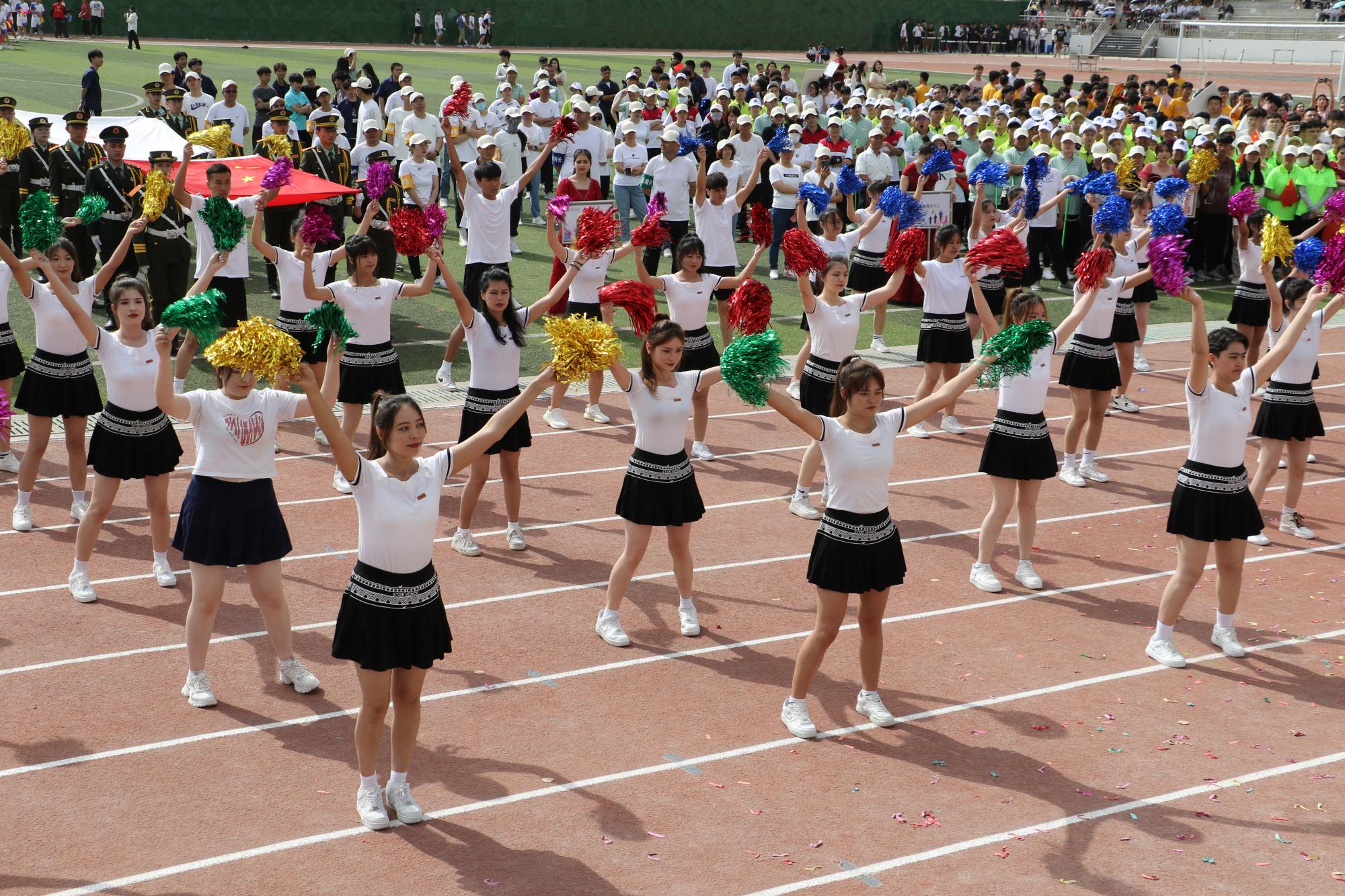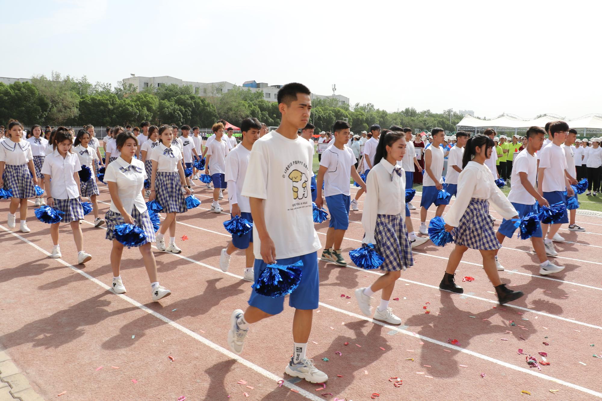 伴着激扬的旋律,国旗方阵踏着整齐的步伐,昂首阔步走向主席台,吉祥物方队、裁判员方队、各工会教师方队精神饱满、气宇轩昂,充分展现了新疆交职院教师积极向上的精神面貌;各学院学生入场方队高喊着各学院富有特色的口号,展现各学院办学特色和独有风采,形态优美的群舞、民族舞、街舞、啦啦操等特色体育舞蹈等学生节目精彩纷呈、别具匠心、活灵活现,充分展示了新疆交职院师生各有所长的优秀素质,也反映出校园文化的多样与包容。