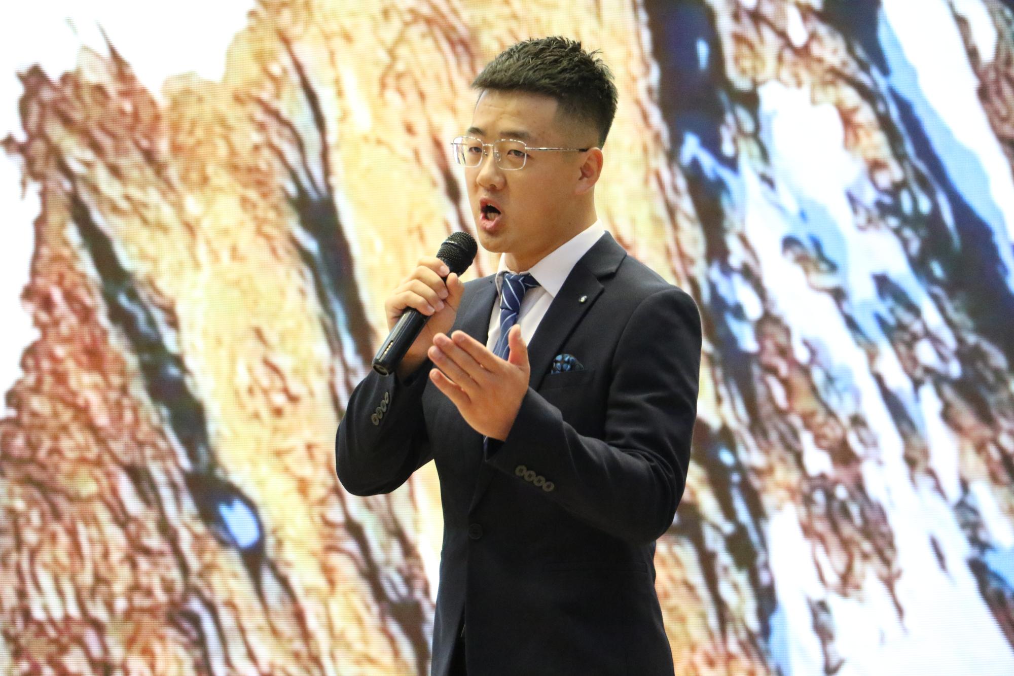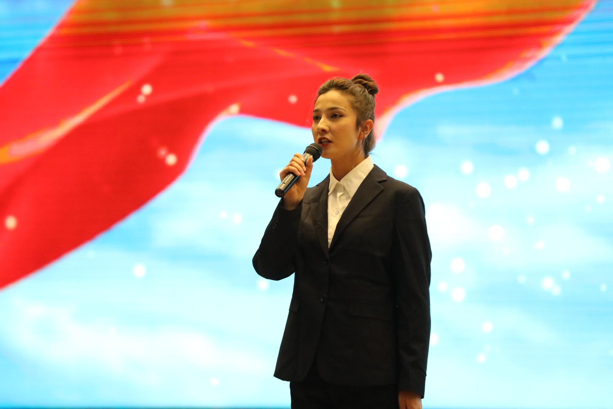 人工智能工程学院信息D221班艾克旦·阿地力同学以她那洪亮磅礴的声音展现了心中有了“可为”的信仰,脚下才会有“有为”的无穷力量。