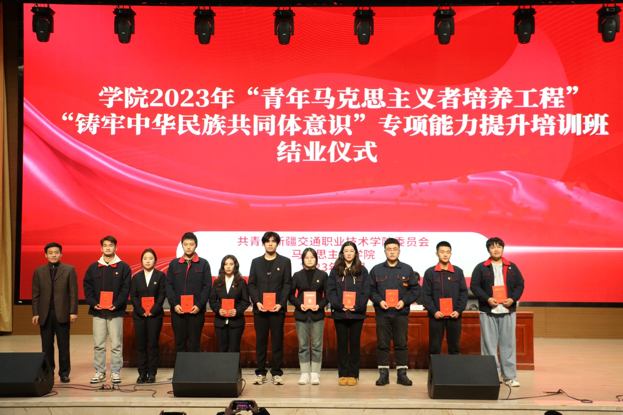 12月14日,学院2023年“青年马克思主义者培养工程”“铸牢中华民族共同体意识”专项能力提升培训班结业仪式在交院大礼堂举行,学院党委书记王瀚出席结业仪式。结业仪式由团委副书记张翾子主持。