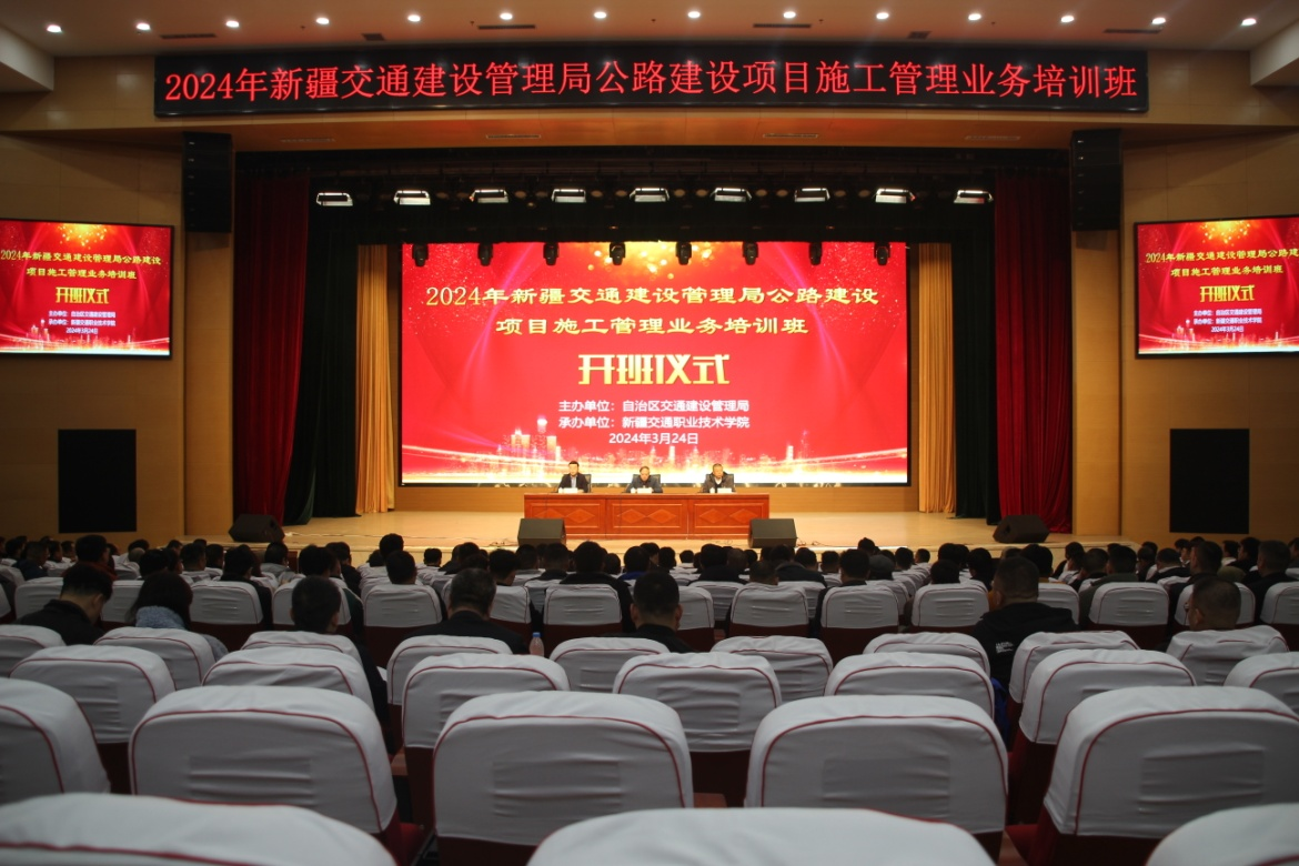 3月24日上午,由自治区交通建设管理局主办,新疆交通职业技术学院承办的2024年交通建设管理局项目管理培训班在学院正式开班。
