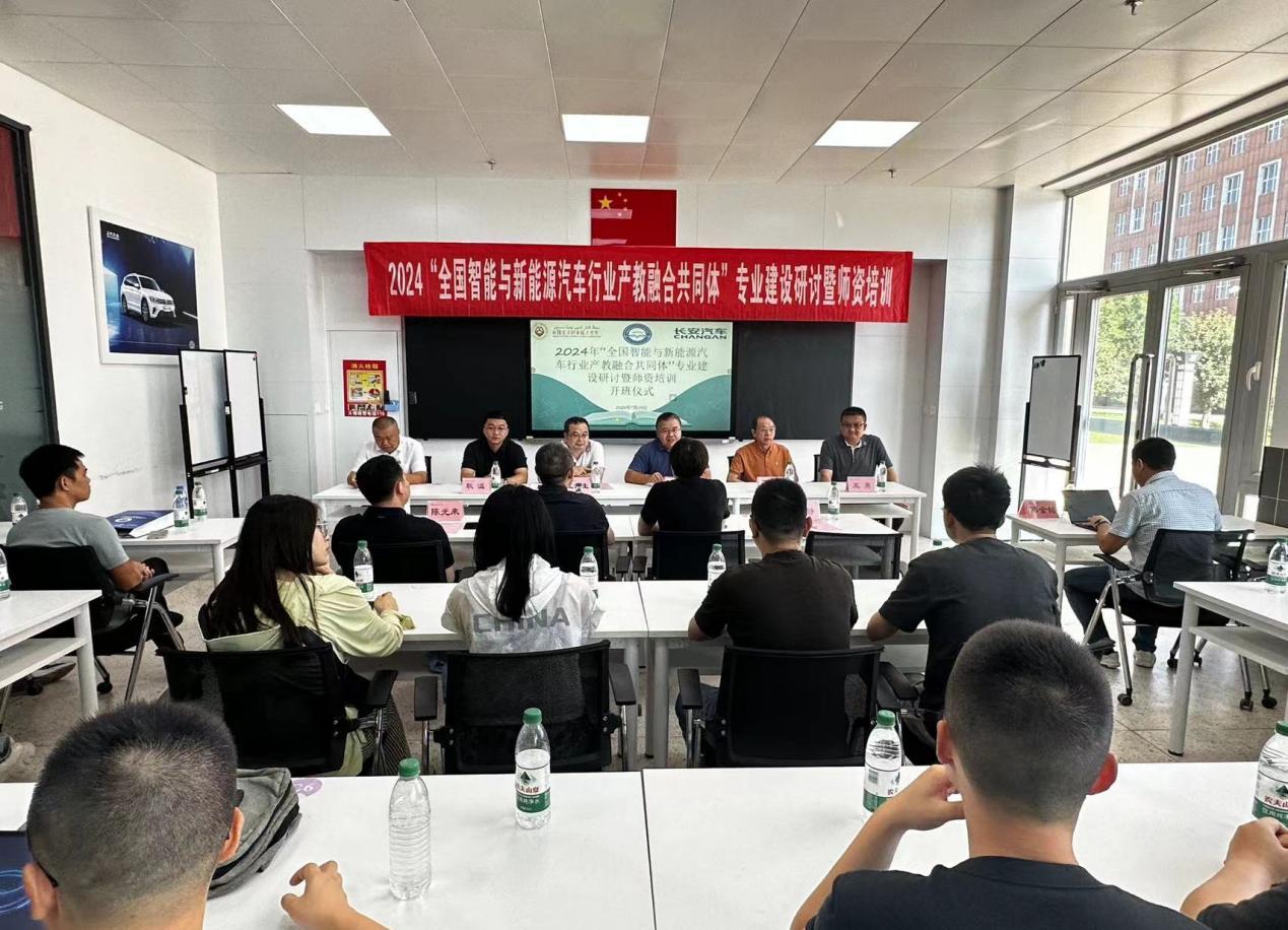 7月20日,全国智能与新能源汽车行业产教融合共同体专业建设研讨暨师资培训班在我院隆重开班。长安汽车学习中心常务副总经理、重庆安驿汽车技术服务有限公司执行董事、全国智能与新能源汽车行业产教融合共同体理事长王武生、学院党委委员、副院长曹兴举等出席了开班仪式并讲话。汽车工程学院党总支书记李刚主持。