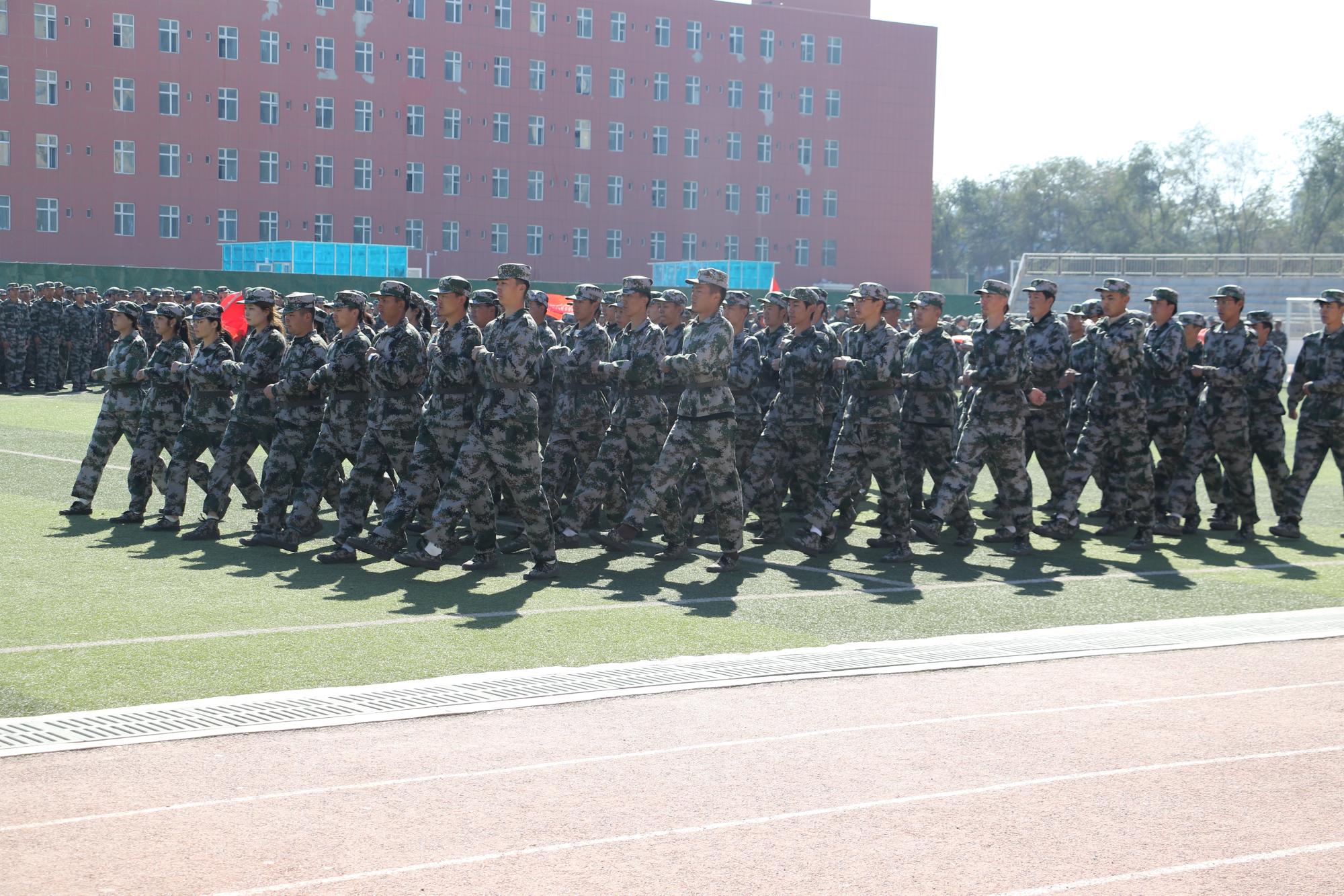 军训汇报表演环节,同学们个个精神抖擞,目光如炬,整齐的步伐、嘹亮的口号、严整的军姿,展示出了新生积极进取、昂扬向上的精神风貌。此外军训标兵连队还进行了刺杀操、匕首操、擒敌拳等军事技能项目展示,一招一式尽显军人本色和青春锐气,赢得了在场师生的阵阵掌声。