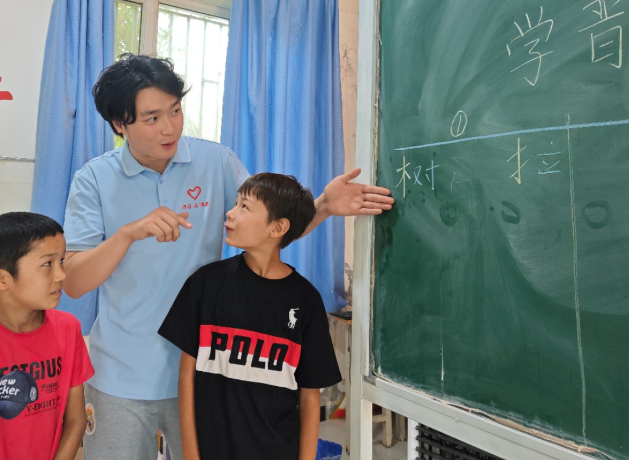 青马志青春,大手拉小手。在非遗文化体验区,志愿者娓娓道来非遗漆艺的悠久历史与独特工艺,手把手指导孩子们亲手制作漆扇,当一柄柄独一无二的漆扇完成时,孩子们眼中闪烁着成就感的光芒,深深感受到了传统文化的深厚底蕴与独特魅力。美育劳育教育环节,扭扭棒在孩子们手中变成了形态各异的创意手工艺品,孩子们的动手能力与创造力在欢声笑语中得到了充分体现。趣味问答和“学普通话、写规范字”抢答活动,不仅普及了普通话知识,更在潜移默化中提高了语言素养,让规范使用国家通用语言文字的意识悄悄扎根在心底。整场活动中,志愿者与孩子们的笑声交织在一起,不仅传递了知识与技能,更在“大手拉小手”的互动中,有形有感有效铸牢中华民族共同体意识。