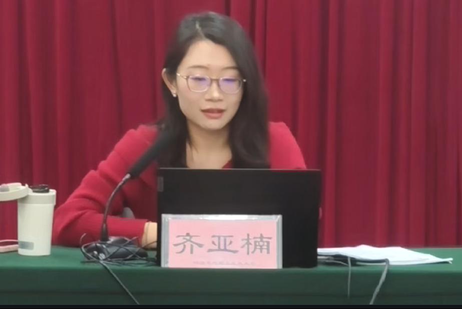 交通运输新就业群体党建指导服务中心综合办主任齐亚楠为学员宣讲“学习习近平总书记重要指示精神,加强交通运输新就业群体思想引领和凝聚服务”课程。