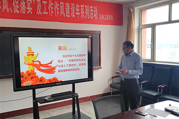 11月13日下午,机电工程学院党总支在机电楼会议室举办题为《中国特色社会主义进入新时代》的讲党课活动,活动由分院党总支书记赛买提·艾力主讲,全体党员和教职工参加活动。