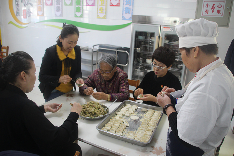 大家自发采购了包饺子的原材料,进了敬老院,大家都开始忙活起来,有的剁馅、有的和面、有的擀皮,老人们和支部成员们一起包着饺子,拉着家常,每个人脸上都洋溢着开心的笑容。