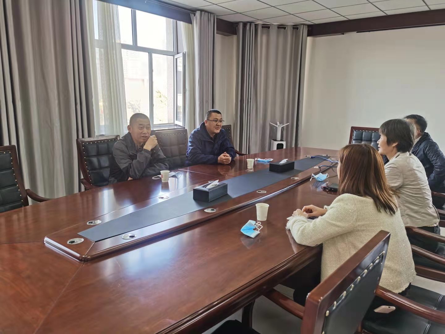2021年4月15日,策勒中等职业学校书记邱新剧、校长哈志太,专程来我院,开展交流工作并对我院的对口帮扶工作表示感谢。