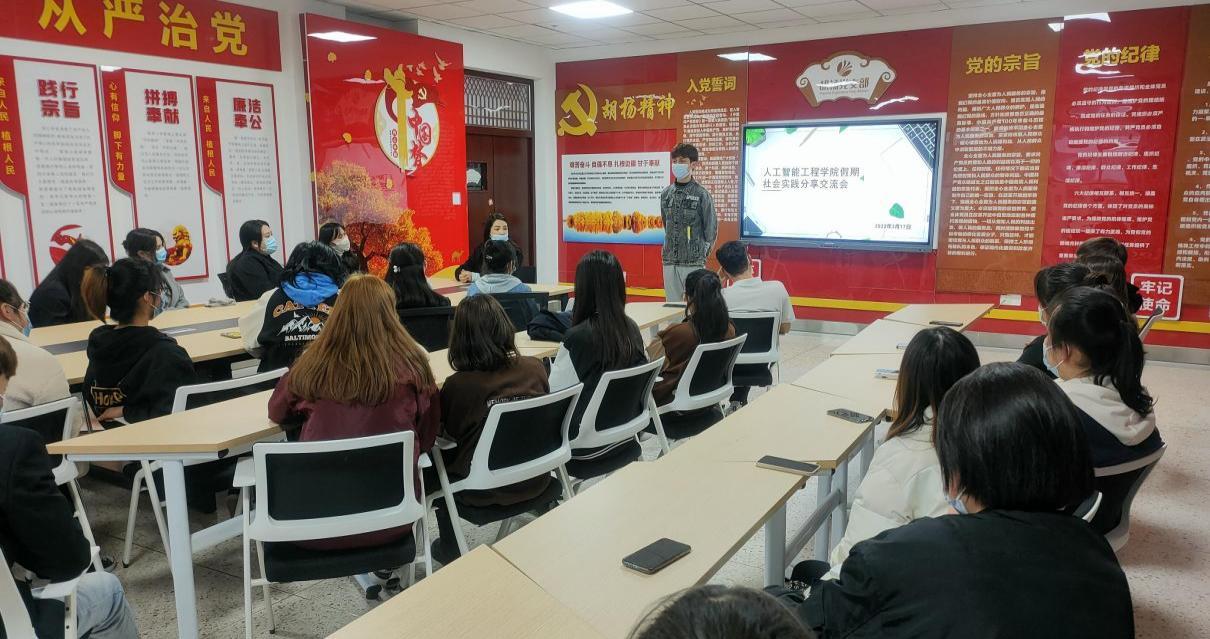 为进一步巩固社会实践成果,给同学们提供互相交流学习的平台,3月17日下午,人工智能工程学院分团委在产教楼智慧教室开展了“大学生假期社会实践分享交流会”。