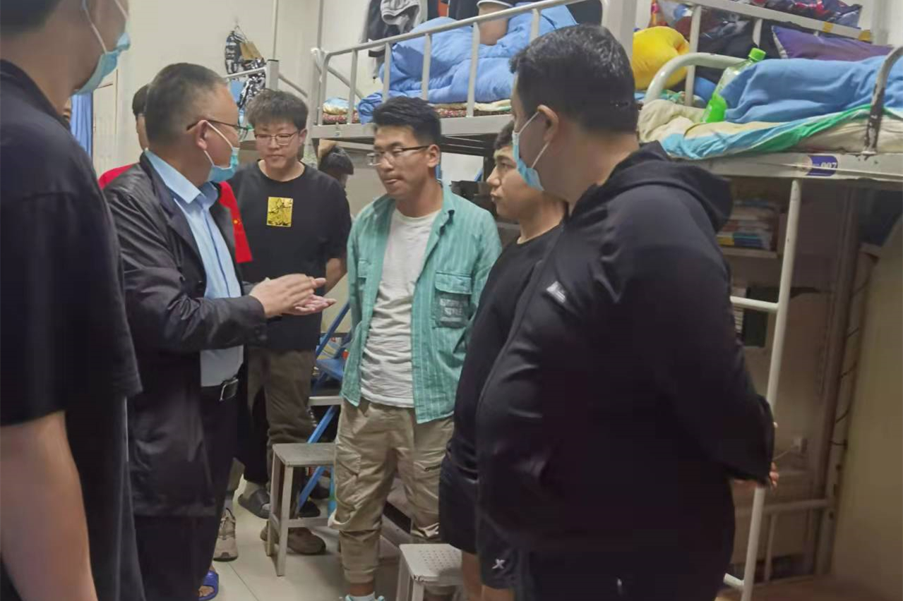 老师们深入学生寝室,检查宿舍的卫生消杀情况,宣传防诈骗安全知识,与学生亲密交流。道桥D211班杨超说:“刚入校时,从甘肃来到新疆,陌生的环境让自己很不适应,正是老师们点点滴滴的关爱,让自己越来越有家的感觉。”同学们也纷纷表示:浓浓师生情,让大家的学习和生活都得到了很大的帮助,心怀感恩!
