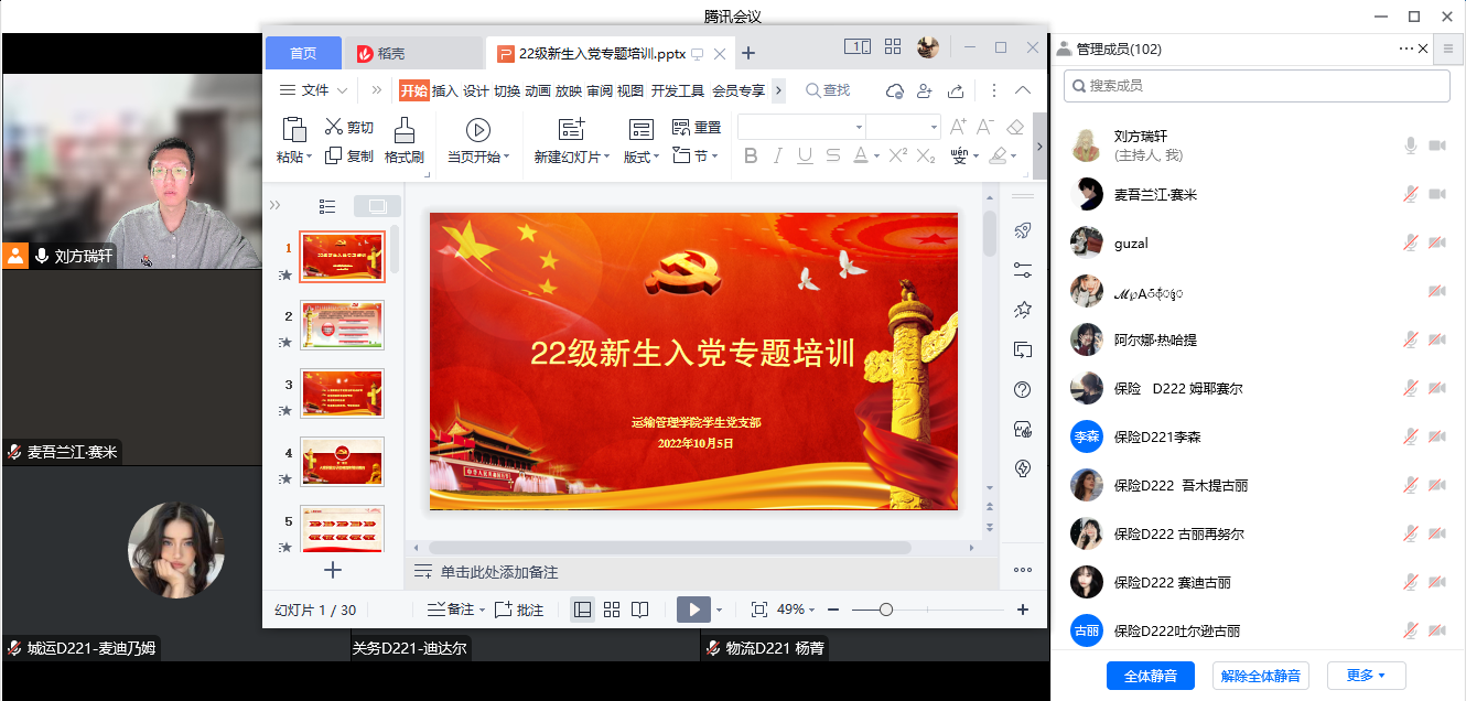 为规范党员教育发展程序,不断提高党员教育管理水平,把好党员发展“入口关”,10月5日下午,运输管理学院学生党支部面向22级102名新入校学生组织开展线上入党专题培训。