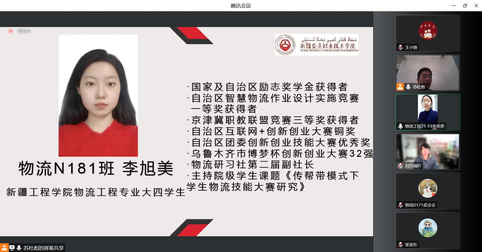 优秀的毕业生代表李旭美、吴晓雯等10余位同学分享了工作经验和体会,在校期间的学习经历,希望广大新生珍惜学习时光,努力学习,积极参加各项技能大赛、社会活动,彰显年轻人的精彩。物流D223班欧·乌丽杰同学表示通过此次宣讲对专业及就业前景有了更深刻的了解,也有了更坚定的目标及发展规划,自信要做一名优秀的物流人,为学院争光。