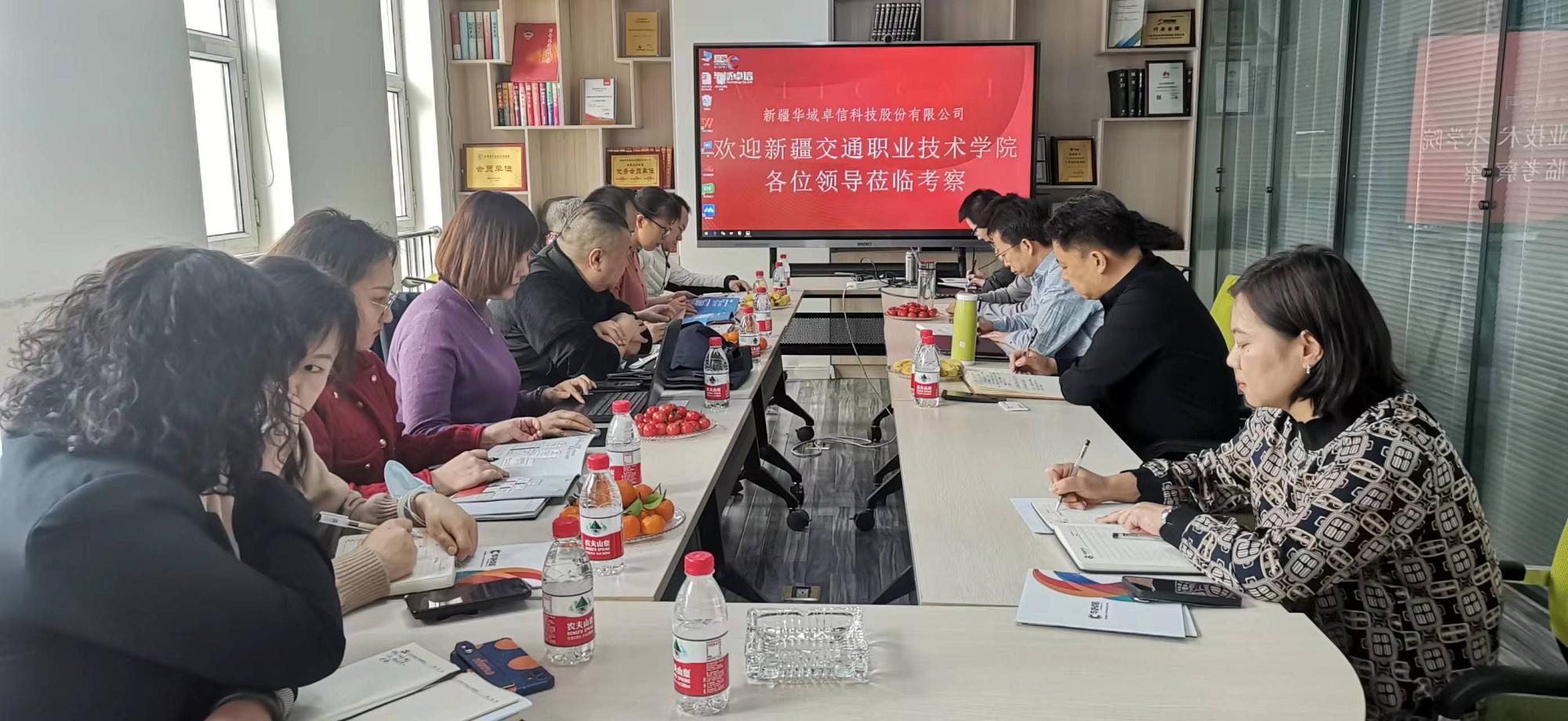 座谈会上,新疆华域卓信科技股份有限公司总经理秦新伟、副总经理陈云、丁志强等对分院一行人员热情接待并组织开展企业参观和座谈交流,陈云就企业的发展历程、主要业务、对学院实训室建设、为教师赋能等情况进行了详细介绍,同时热切希望通过搭建校企合作平台,能有更多优秀的毕业生来企业发展。