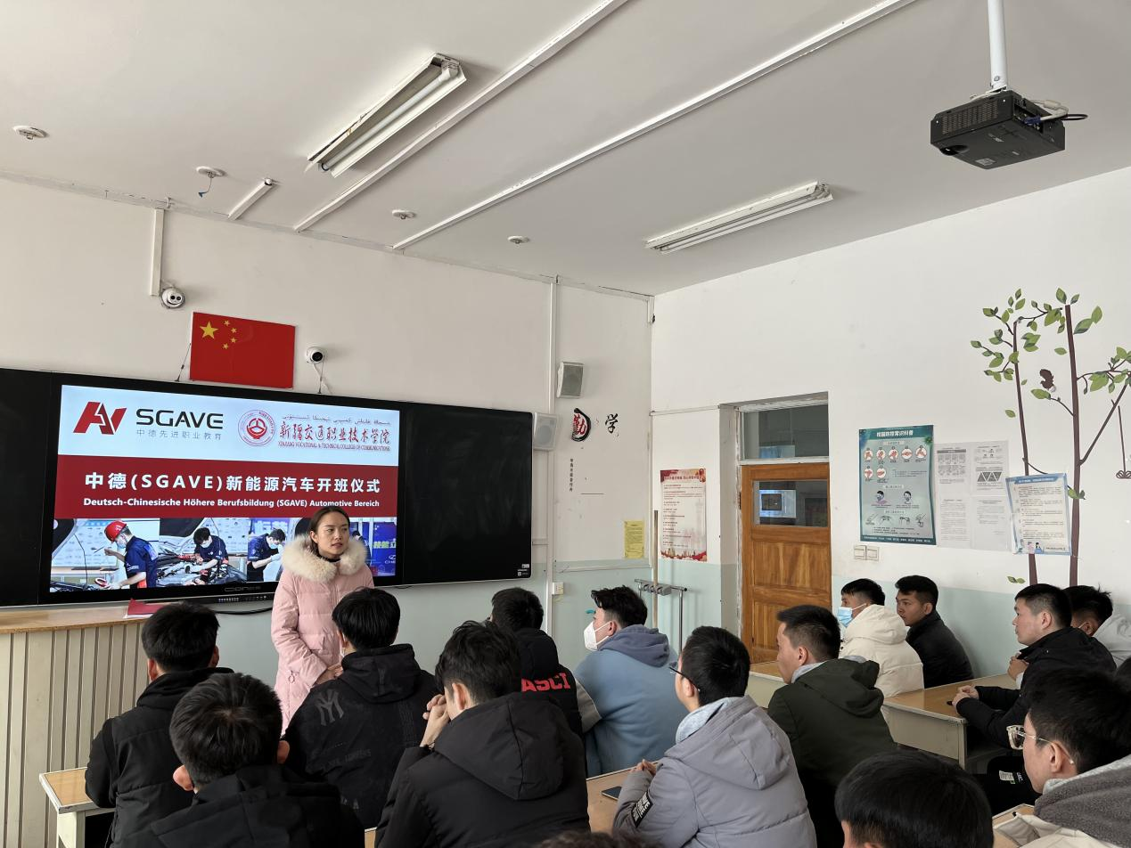 3日上午,学院召开中德(SGAVE)新能源汽车开班仪式,会上,汽车工程学院副院长董静指出建中德班的目的是打造新能源汽车检测与维修专业人才培养的质量名片,希望同学们珍惜彼此学习机会,好好学习,努力成为新时代的能工巧匠和大国工匠。