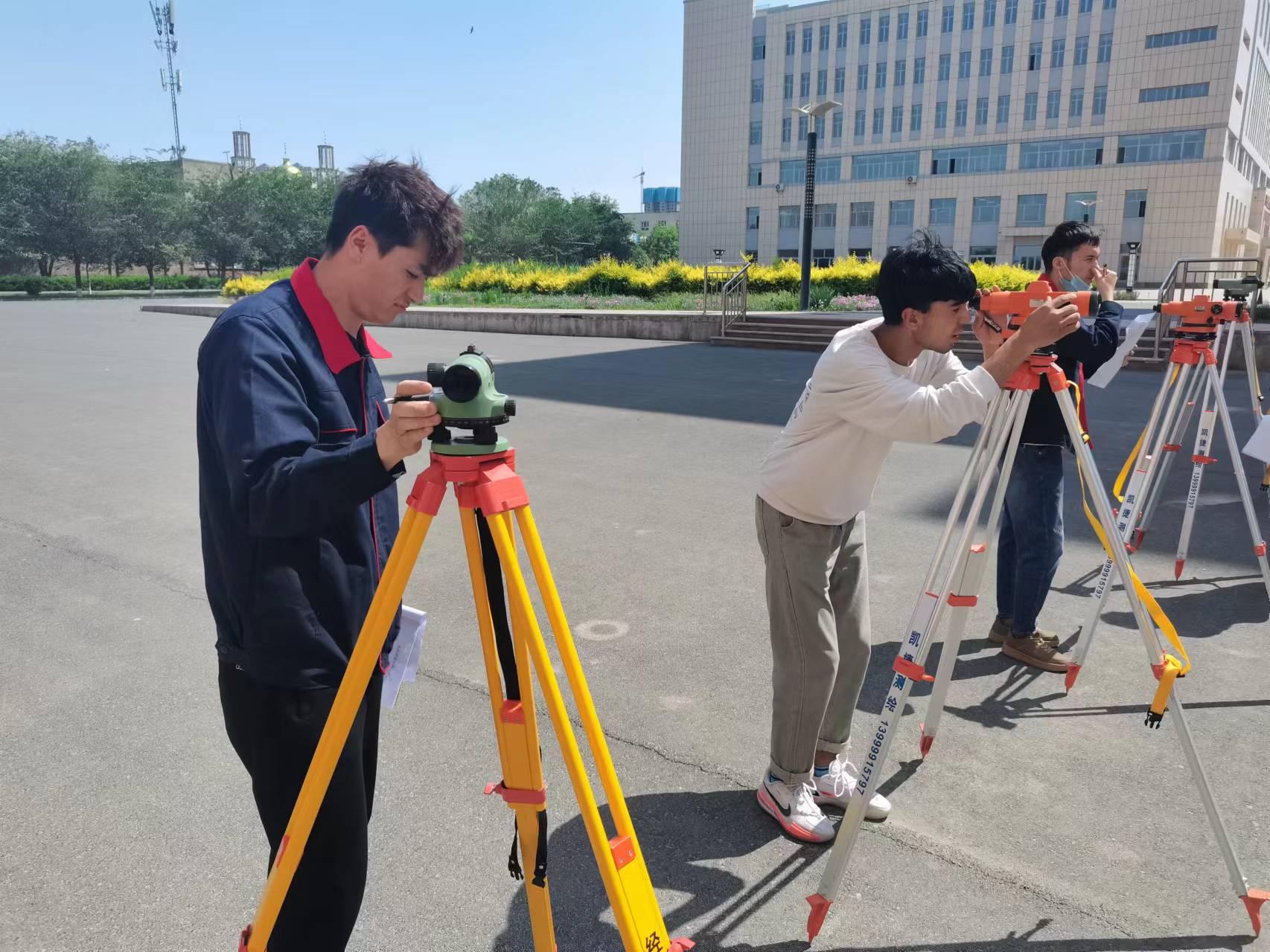 5月23日下午,道路桥梁工程学院测量测绘教研室教师在土木楼前测量实训场地进行了2022级铁道工程技术专业三个班级79人次的测量等级工操作考试。