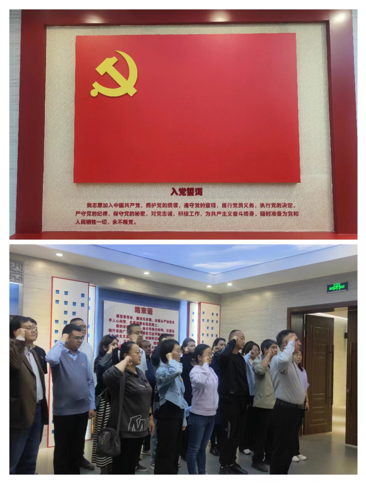 参观结束后,在党总支副书记吐依洪江·肉孜的带领下全体党员重温入党誓词。铿锵的誓词,坚定的承诺,让每一位党员的心灵再次受到洗礼。