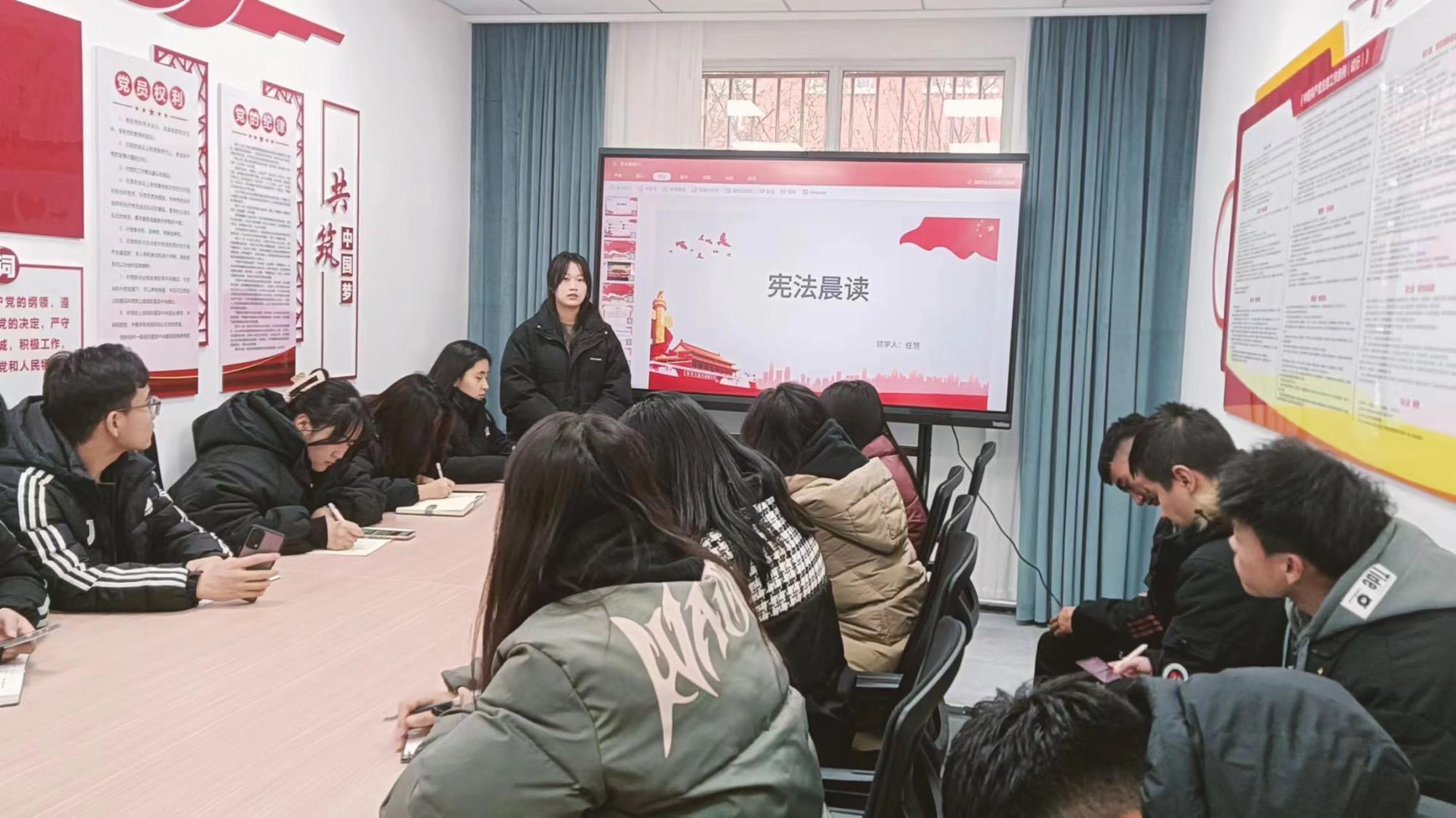 为了提高入党申请人的思想觉悟,充分认识宪法主要内容,树立正确良好的政治品德,12月6日,人工智能工程学院ICTS智慧思政工作室在一站式红色书屋开展入党申请人培训班第四讲宪法晨读活动,由入党申请人任慧同学主讲。