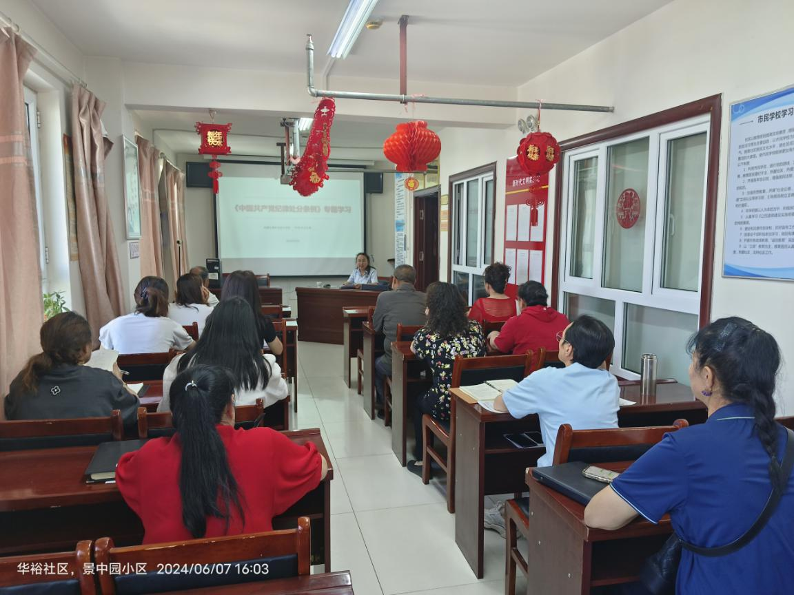 为深入学习贯彻新修订的《中国共产党纪律处分条例》,推动党纪学习教育走深走实,6月7日下午,人文基础教育学院党总支书记叶来·叶尔扎提走进华裕社区作题为《〈中国共产党纪律处分条例〉专题学习》的辅导授课。