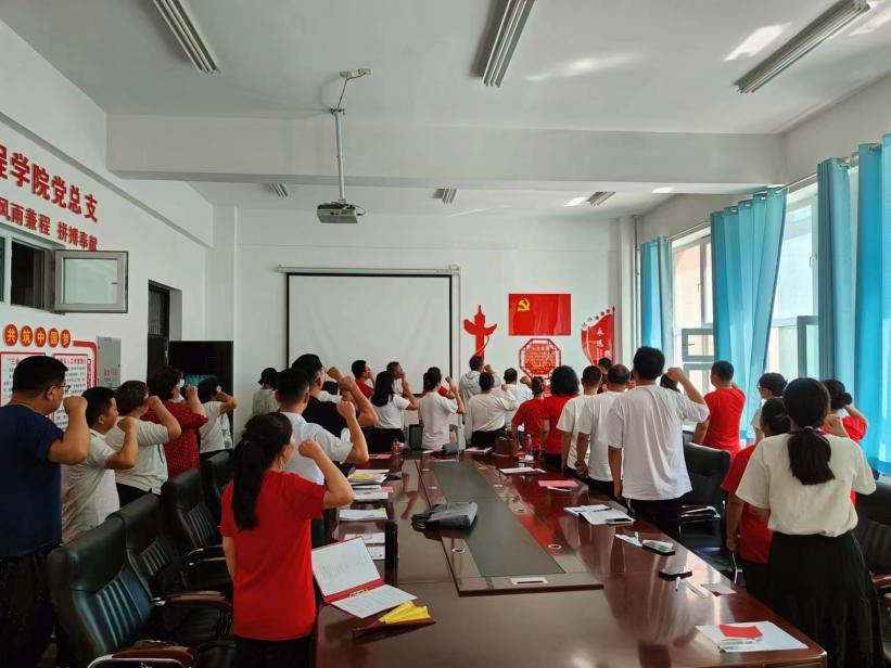 活动由庄严的《国际歌》拉开帷幕,党总支书记樊梦兵带领全体党员重温入党誓词。党员先锋岗代表翟磊老师和大家一起分享了自己入党的动机以及在党组织内的成长,情真意切,让人动容,她说:“入党20年,经历企业的风雨变换,来到学院虽然只有短短的两年时间,但我感到心里的平静、纯净与安宁,繁忙中有快乐,也见证了共产党员的榜样作用,我要用一生的奋斗去践行自己最初的诺言,感恩党,感恩伟大的祖国!”