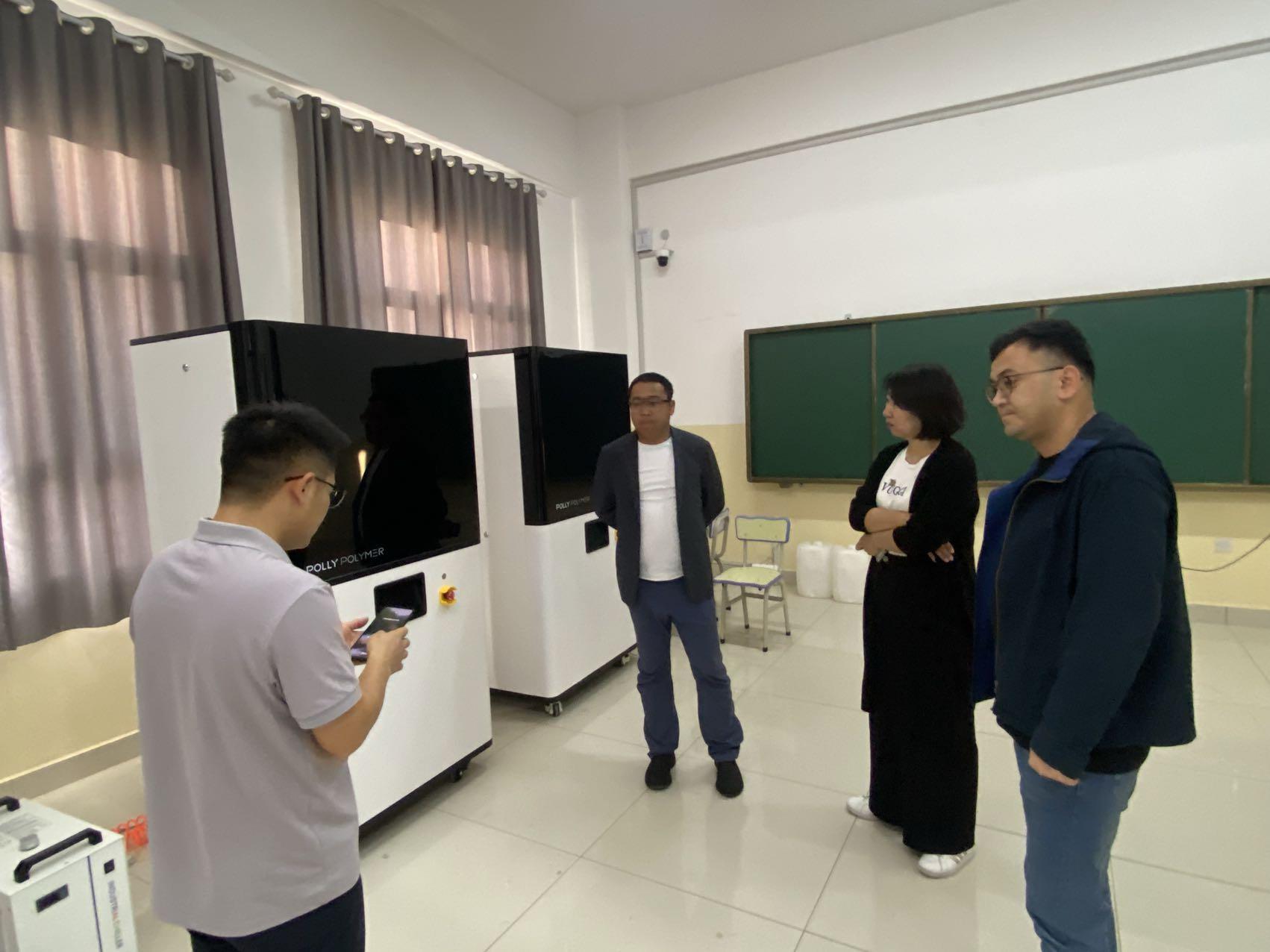 在参观过程中,围绕液体3D打印技术、相关设备的使用操作、打印材料等内容进行了详细了解,并亲身体验了设备打印出的拖鞋、靠枕等产品。同时,双方就3D打印技术在职业教育中的发展趋势、课程设置及师资培训等方面进行了深入探讨。