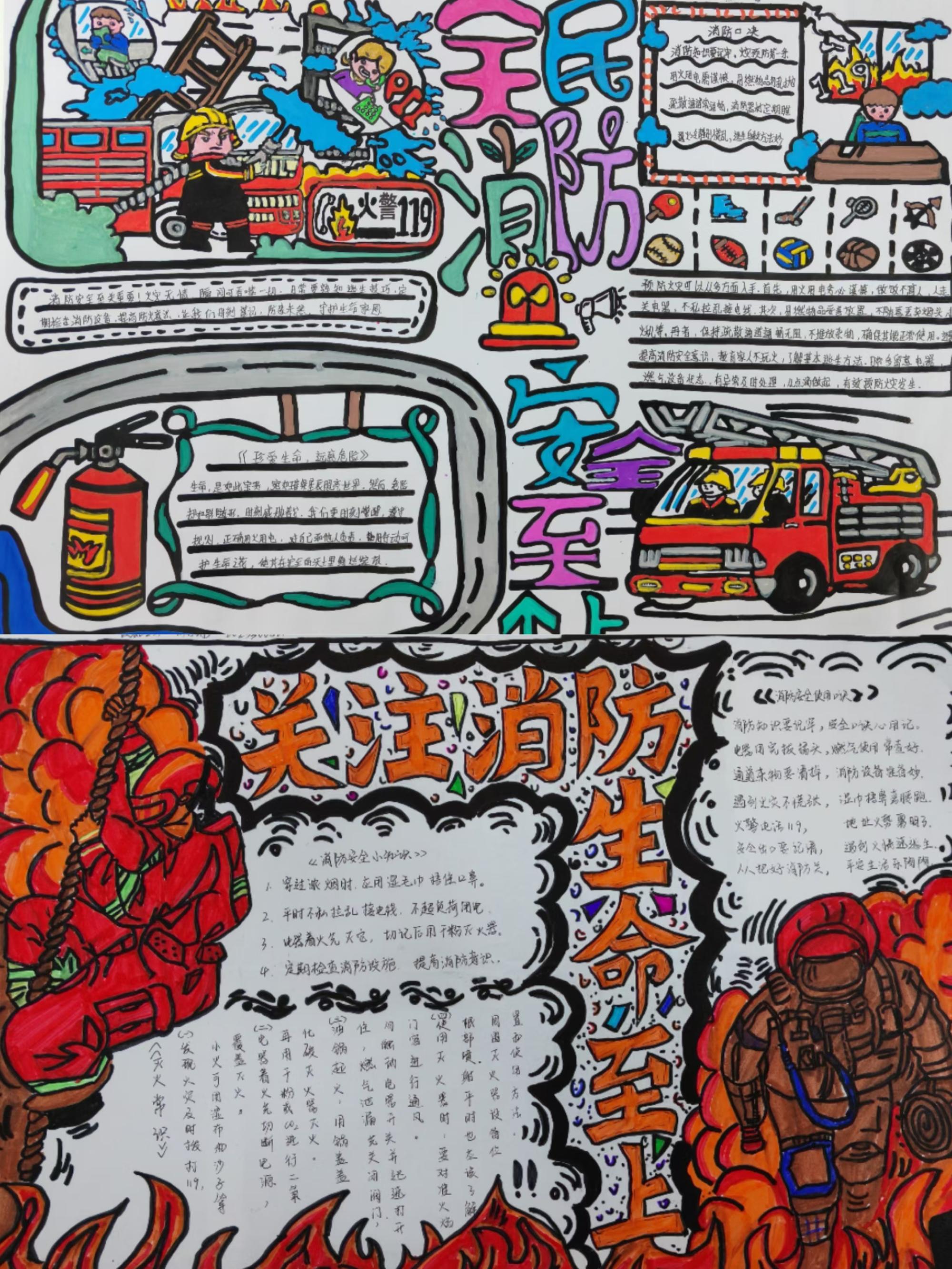 “全民消防 生命至上”手抄报评比活动不仅是一次艺术与创意的碰撞,更是一堂生动的安全教育课,使同学们对消防安全知识有了更深入的了解。同时,在分院内营造了人人参与消防,共创平安和谐校园的浓厚氛围。