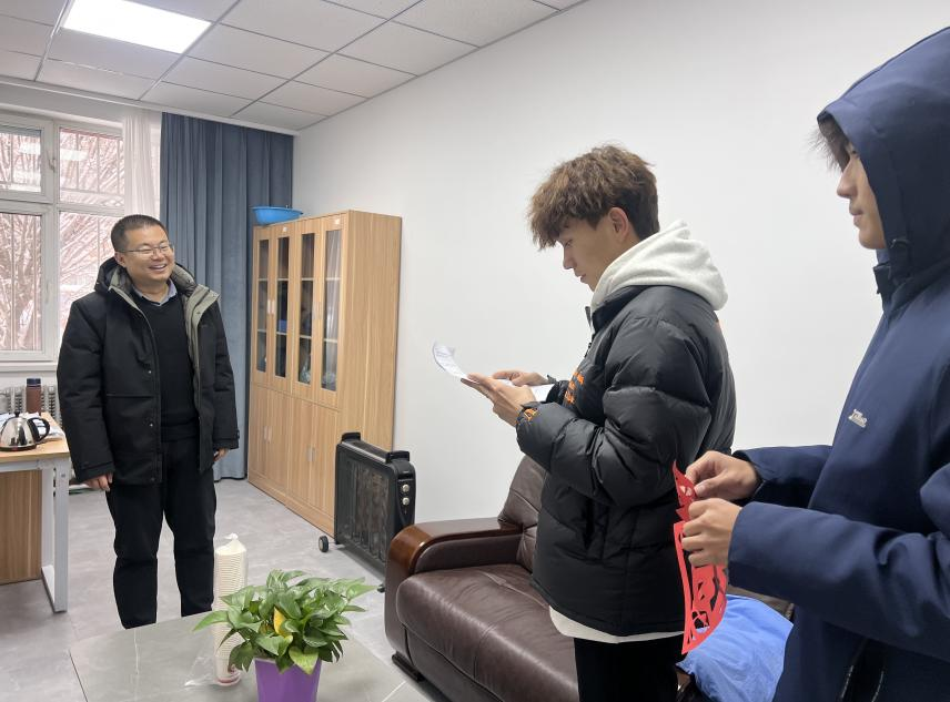 此外,活动现场还设置了暖心的“送温暖”环节。同学们可以将自己亲手制作的剪纸作品赠送给现场的老师、同学。同学们将剪出的‘福’字张贴在一站式和二号教学楼各个老师办公室门口,提前为各位老师新年送上真挚祝福,让浓浓的中国风与温暖情谊在校园里弥漫开来。一幅幅剪纸仿佛带着同学们的敬意与关怀,瞬间让平日里略显严肃的办公室门口变得温馨起来。