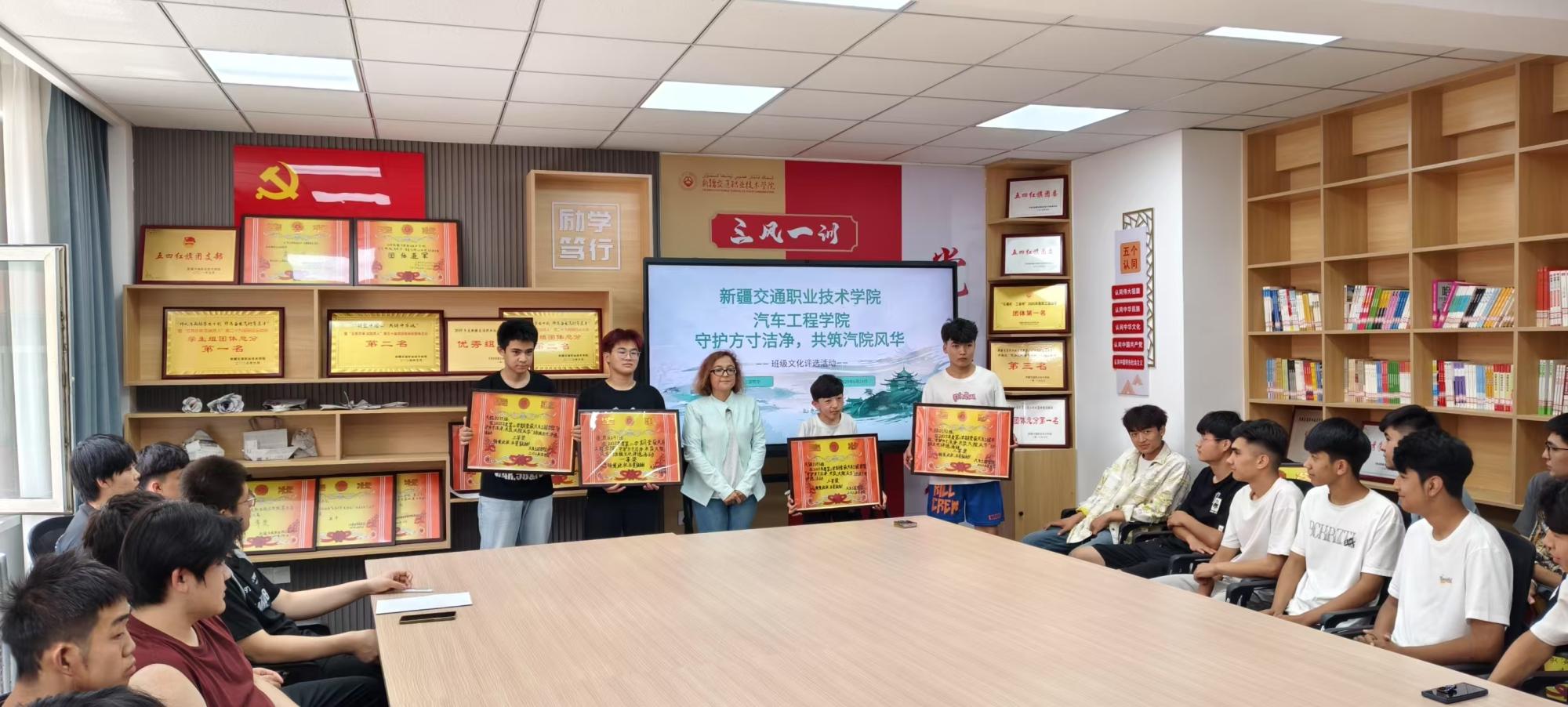 6月24日下午,汽车工程学院学生管理办公室在12号学生公寓一站式服务中心在红色书屋举行“守护方寸洁净,共筑汽车风华”班级文化评比颁奖仪式。