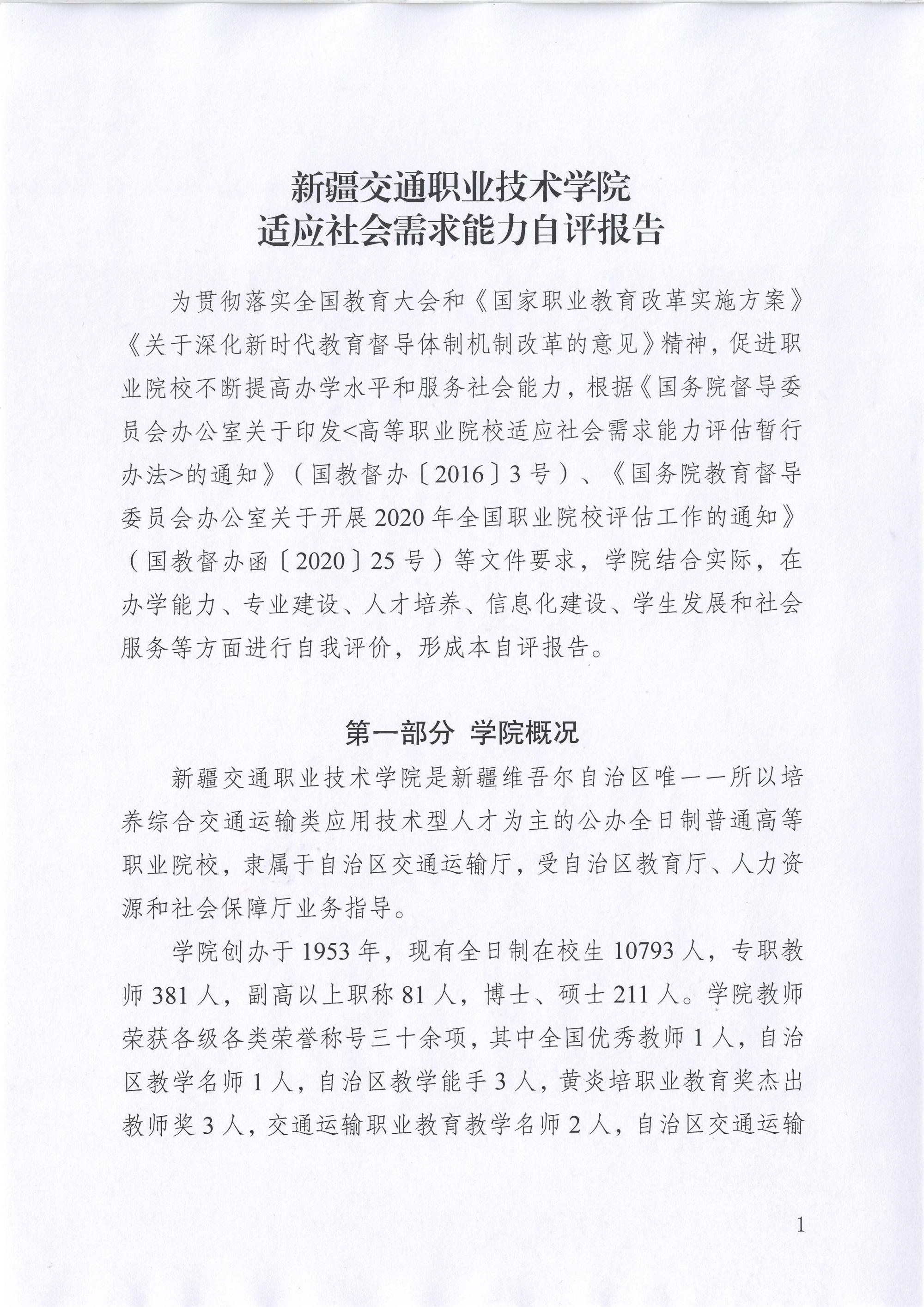 新疆交通职业技术学院适应社会需求能力自评报告