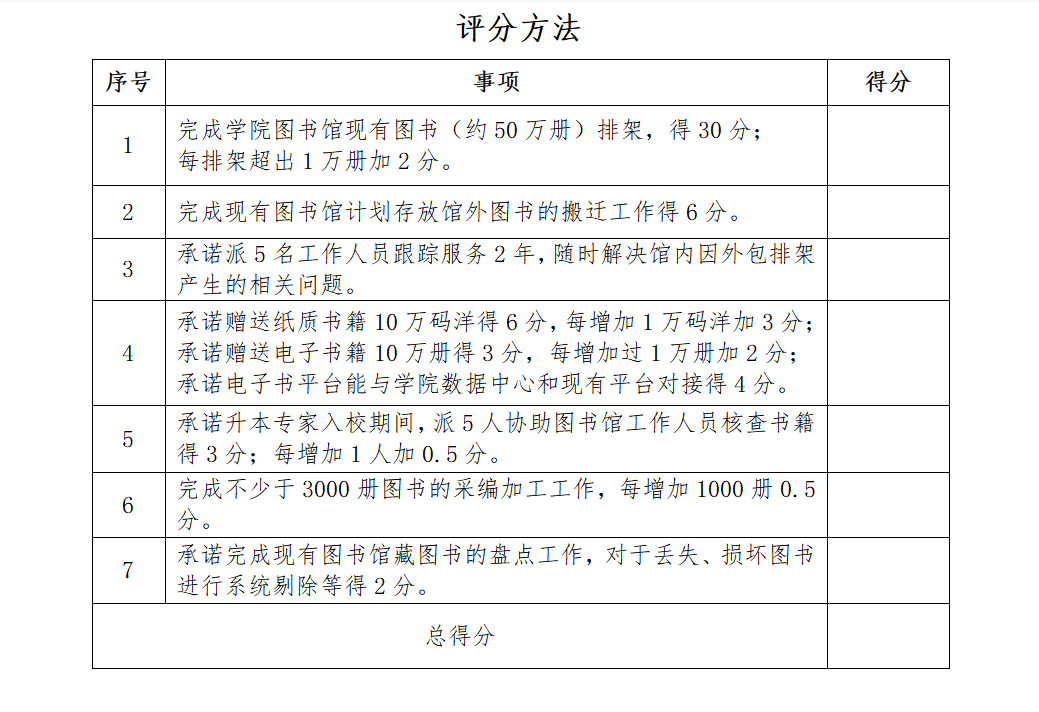 3.得分最高者中标;签订合同付款项目款的30%,经上级数据核查人员核查图书无问题后在3个月内支付70%。