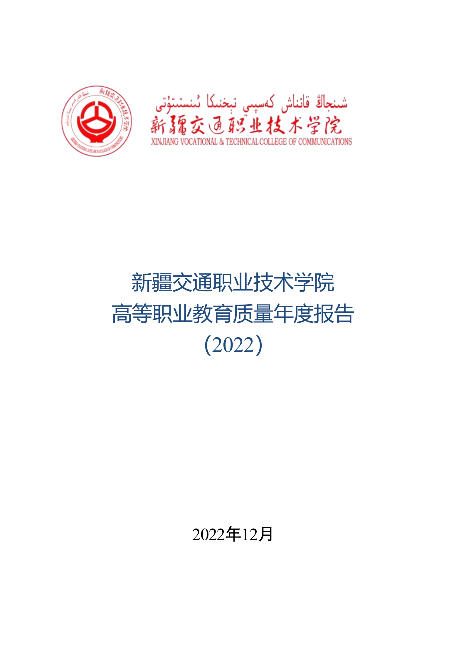 新疆交通职业技术学院高等职业教育质量年度报告(2022)